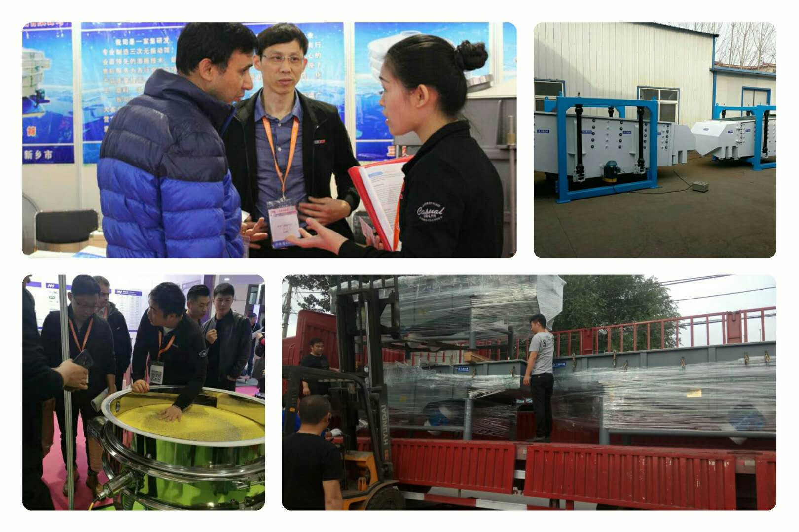 為了滿足用戶不同的振動篩分需要,技術人員著力于振動篩分設備的技術開發,施工工藝的創新改良,尤其是對于圓形振動篩,篩框采用自動卷圓設備,雙折彎的設計,改善了原形振動篩漏料的現象,提高了工作效率。